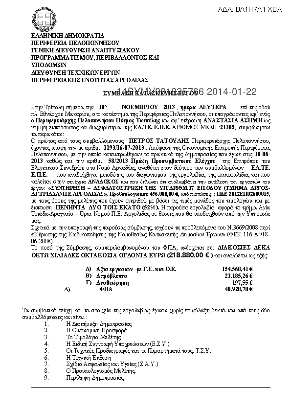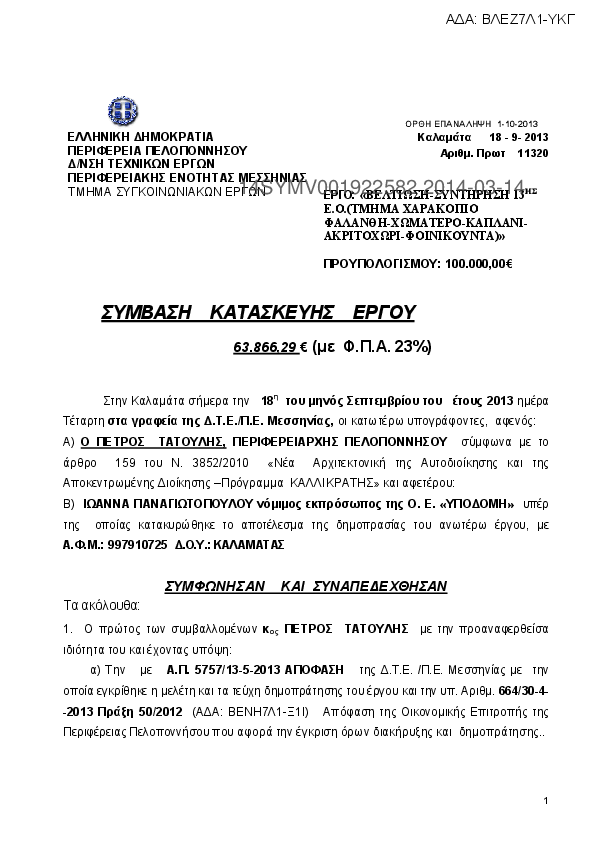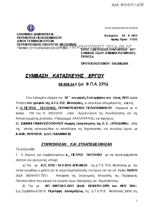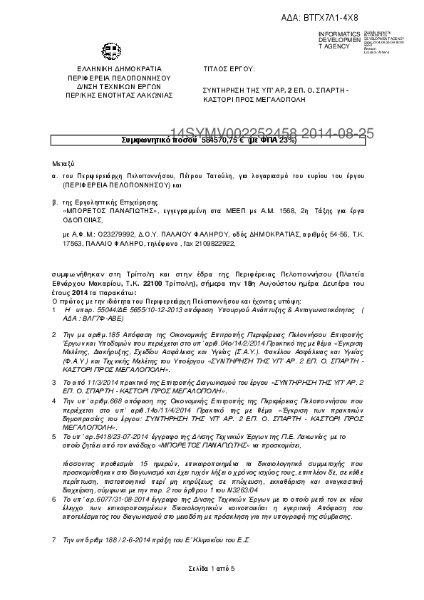 8. ΣΥΜΒΑΣΗ ΕΡΓΟΥ ΣΥΝΤΗΡΤΗΣΗ ΤΗΣ ΥΠ ΑΡ. 2 ΕΠ.Ο. ΣΠΑΡΤΗ ΚΑΣΤΟΡΙ ΠΡΟΣ ΜΕΓΑΛΟΠΟΛΗ