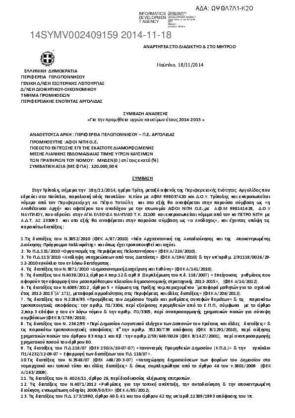 10. ΣΥΜΒΑΣΗ ΠΡΟΜΗΘΕΙΑΣ ΥΓΡΩΝ ΚΑΥΣΙΜΩΝ 2014-2015 ΠΕ ΑΡΓΟΛΙΔΑΣ