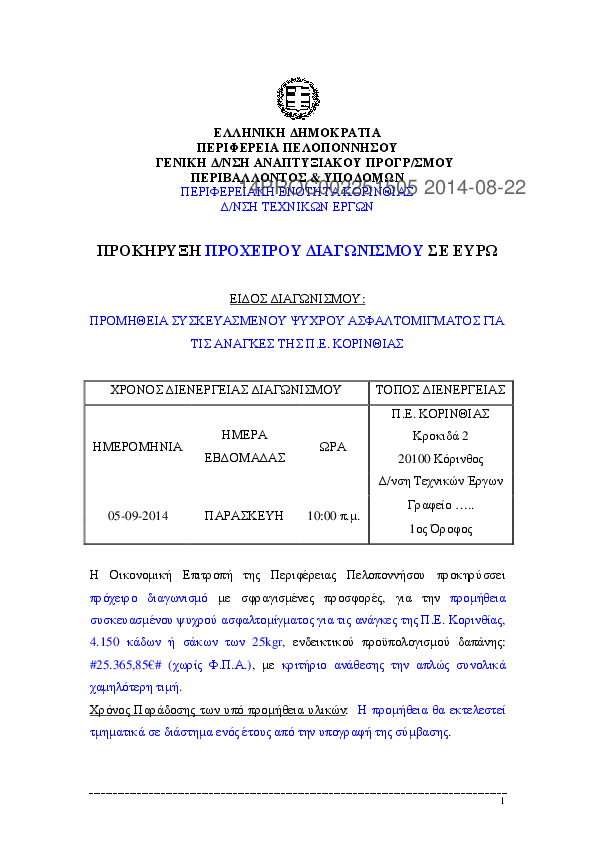 7. ΠΡΟΚΗΡ. ΠΡΟΧ. ΔΙΑΓ. ΤΗΣ ΠΡΟΜΗΘ. ΨΥΧΡΟΥ ΑΣΦΑΛΤΟΜΙΓΜΑΤΟΣ ΓΙΑ ΤΙΣ ΑΝΑΓΚΕΣ ΤΗΣ Π.Ε. ΚΟΡΙΝΘΙΑΣ