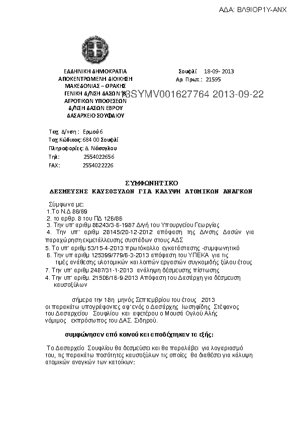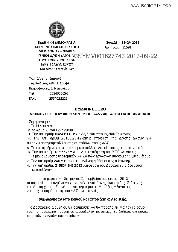 3. Συμφωνητικό δέσμευσης καυσοξύλων για κάλυψη ατομικών αναγκών συστάδας 16ΙΒ
