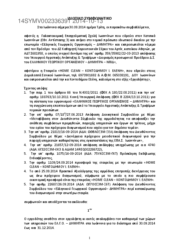 1. ΙΔΙΩΤΙΚΟ ΣΥΜΦΩΝΗΤΙΚΟ ΠΑΡΟΧΗΣ ΥΠΗΡΕΣΙΩΝ