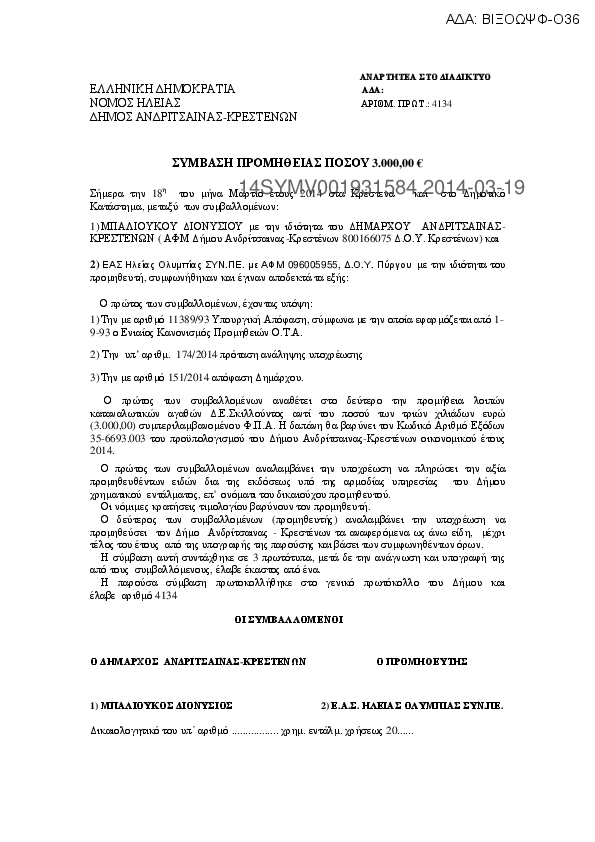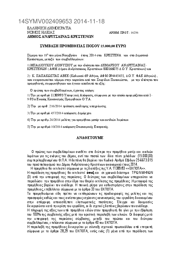 Αναζήτηση σε προκηρύξεις και συμβάσεις για: