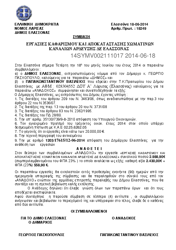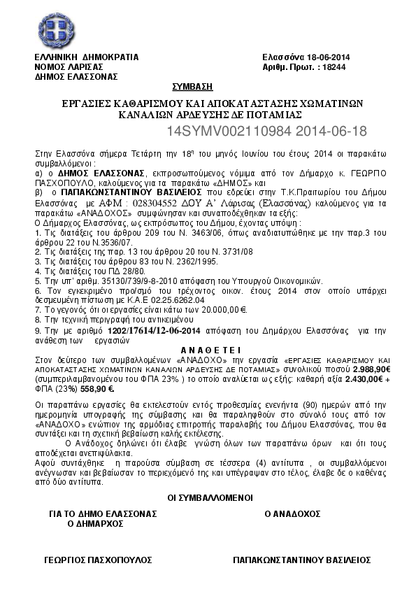 1. ΕΡΓΑΣΙΕΣ ΚΑΘΑΡΙΣΜΟΥ ΚΑΙ ΑΠΟΚΑΤΑΣΤΑΣΗΣ ΧΩΜΑΤΙΝΩΝ ΚΑΝΑΛΙΩΝ ΑΡΔΕΥΣΗΣ ΔΕ ΕΛΑΣΣΟΝΑΣ