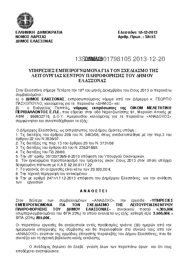 2. ΠΑΡΟΧΗ ΥΠΗΡΕΣΙΩΝ ΕΜΠΕΙΡΟΓΝΩΜΟΝΑ ΓΙΑ ΤΟΝ ΣΧΕΔ. ΚΕΝΤΡΟΥ ΠΛΗΡΟΦΟΡΗΣΗΣ ΤΟΥ ΔΗΜΟΕ ΕΛΑΣΣΟΝΑΣ