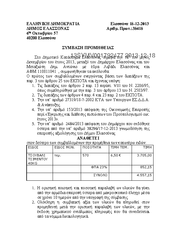 7. ΣΥΜΒΑΣΗ ΓΙΑ ΠΡΟΜΗΘΕΙΑ ΟΙΚΟΔΟΜΙΚΩΝ ΥΛΙΚΩΝ