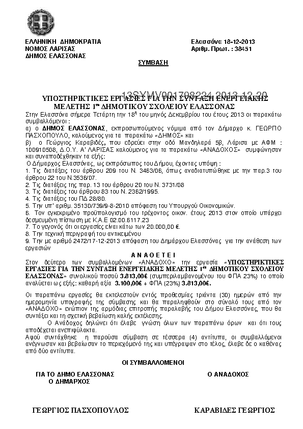 1. ΠΑΡΟΧΗ ΥΠΟΣΤΗΡΙΚΤΙΚΩΝ ΕΡΓΑΣΙΩΝ ΓΙΑ ΤΗΝ ΣΥΝΤΑΞΗ ΕΝΕΡΓΕΙΑΚΗΣ ΜΕΛΕΤΗΣ 1ου ΔΗΜΟΤΙΚΟΥ ΣΧΟΛΕΙΟΥ ΕΛΑΣΣΟΝΑΣ