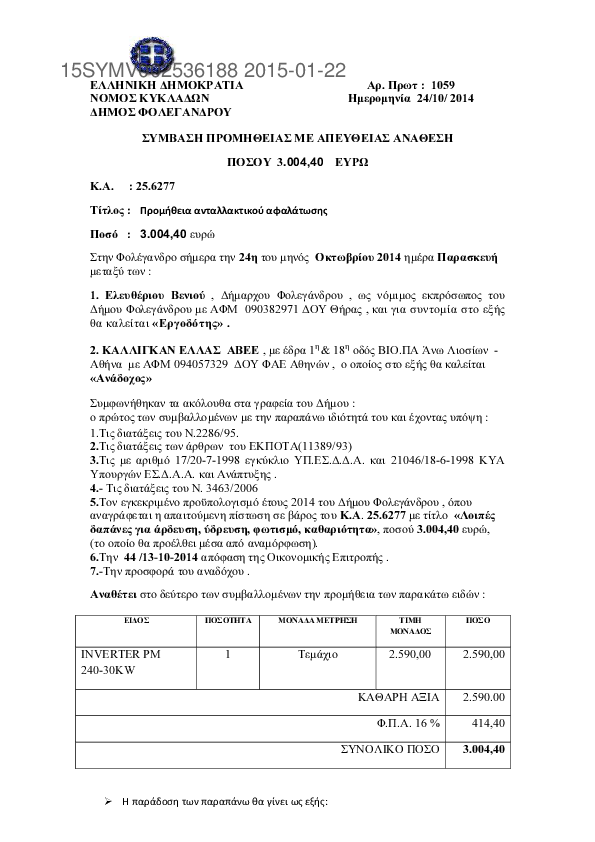 Αναζήτηση σε προκηρύξεις και συμβάσεις για: