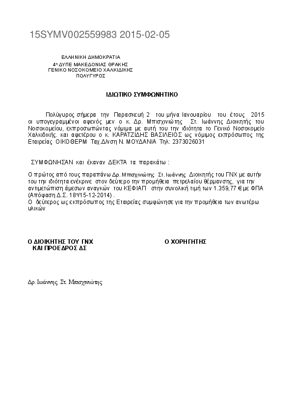 9. ΙΔΙΩΤΙΚΟ ΣΥΜΦΩΝΗΤΙΚΟ ΓΙΑ ΠΕΤΡΕΛΑΙΟ ΘΕΡΜΑΝΣΗΣ ΓΙΑ ΚΕΦΙΑΠ ΤΟΥ Γ.Ν.ΧΑΛΚΙΔΙΚΗΣ