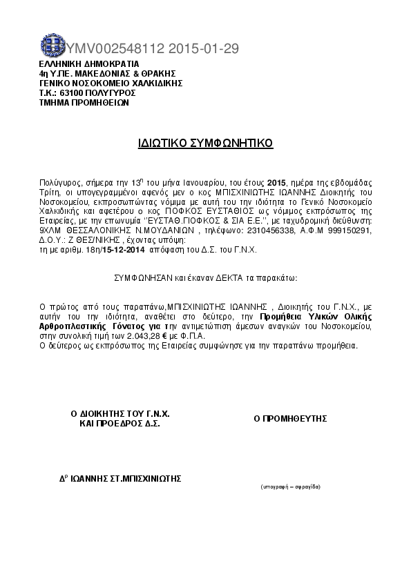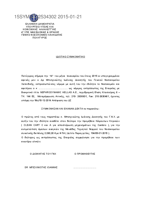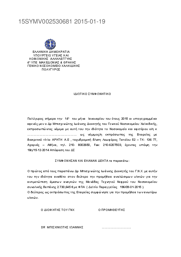 1. ΙΔ. ΣΥΜΦΩΝΗΤΙΚΟ ΠΡΟΜΗΘΕΙΑΣ ΑΝΑΛΩΣΙΜΩΝ Μ.Τ.Ν