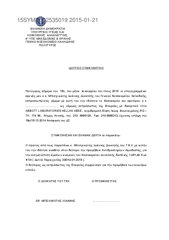 6. ΙΔ. ΣΥΜΦΩΝΗΤΙΚΟ ΠΡΟΜΗΘΕΙΑΣ ΑΝΤΙΔΡΑΣΤΗΡΙΩΝ ΑΙΜΟΔΟΣΙΑΣ