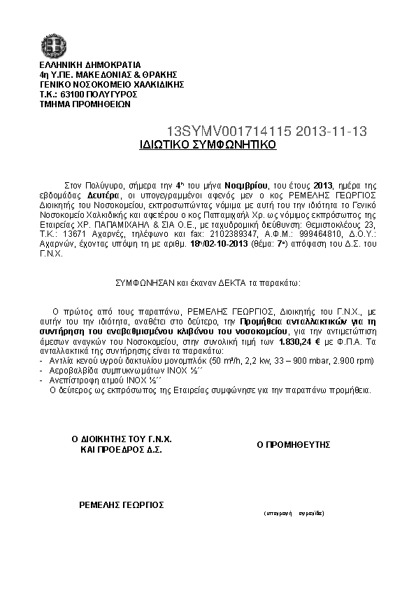1. ΠΡΟΜΗΘΕΙΑ ΑΝΤΑΛΛΑΚΤΙΚΩΝ ΓΙΑ ΤΗ ΣΥΝΤΗΡΗΣΗ ΤΟΥ ΑΝΑΒΑΘΜΙΣΜΕΝΟΥ ΚΛΙΒΑΝΟΥ ΑΠΟΣΤΕΙΡΩΣΗΣ ΤΟΥ ΝΟΣΟΚΟΜΕΙΟΥ
