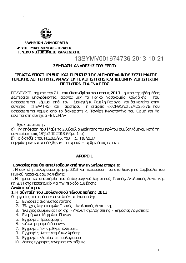 7. Σύμβαση υποστήριξης και τήρησης του διπλογραφικού συστήματος