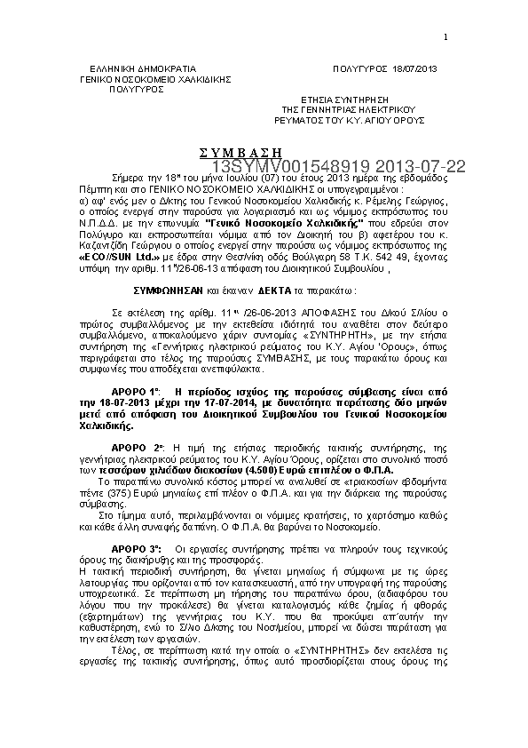 8. ΕΤΗΣΙΑ ΣΥΝΤΗΡΗΣΗ ΤΗΣ ΓΕΝΝΗΤΡΙΑΣ ΗΛΕΚΤΡΙΚΟΥ ΡΕΥΜΑΤΟΣ ΤΟΥ Κ.Υ. ΑΓΙΟΥ ΟΡΟΥΣ
