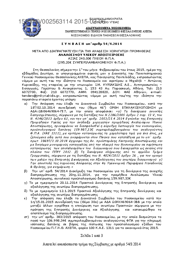 Αναζήτηση σε προκηρύξεις και συμβάσεις για: