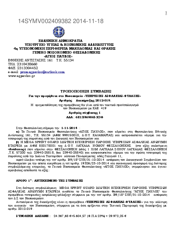 7. ΣΥΜΒΑΣΗ ΜΕ MEGA SPRINT GUARD ΓΙΑ ΥΠΗΡΕΣΙΕΣ ΑΣΦΑΛΕΙΑΣ - ΦΥΛΑΞΗΣ