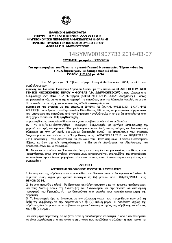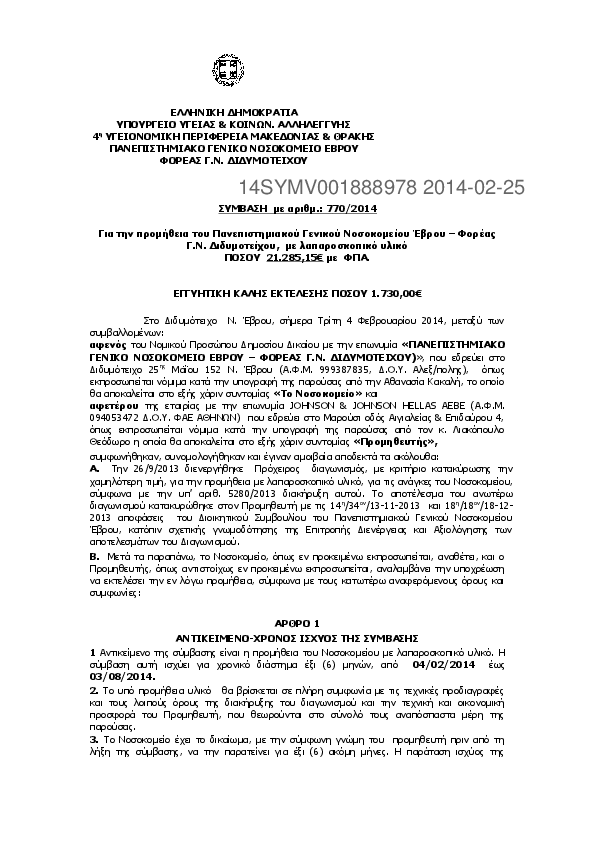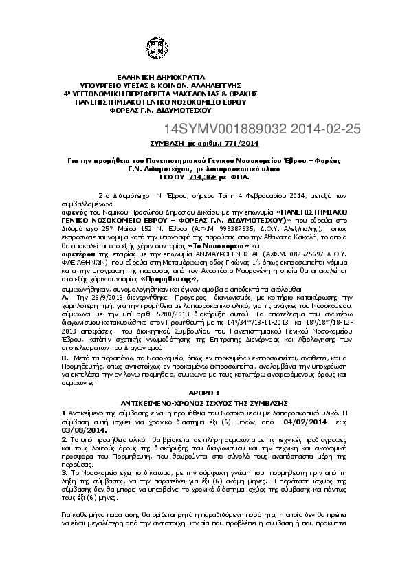 10. ΣΥΜΒΑΣΗ με αριθμ.: 5155/2014 Για την προμήθεια του Πανεπιστημιακού Γενικού Νοσοκομείου Έβρου (Φορέ