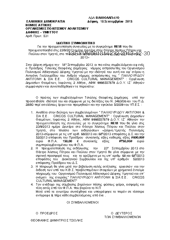 8. Συμφωνητικό πραγματοποίησης συναυλίας με το συγκρότημα REMI που θα πραγματοποιηθεί στις 23/9/2013