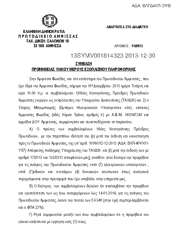 7. ΣΥΜΒΑΣΗ ΠΡΟΜΗΘΕΙΑΣ ΥΛΙΚΟΥ ΜΕΡΟΥΣ ΕΞΟΠΛΙΣΜΟΥ ΠΛΗΡΟΦΟΡΙΚΗΣ