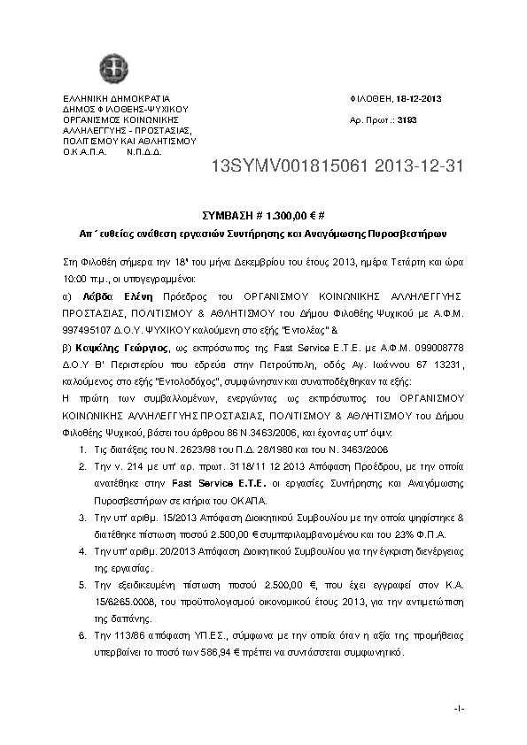 10. ΣΥΜΒΑΣΗ ΓΙΑ ΕΡΓΑΣΙΕΣ ΣΥΝΤΗΡΗΣΗΣ ΚΑΙ ΑΝΑΓΟΜΩΣΗΣ ΠΥΡΟΣΒΕΣΤΗΡΩΝ
