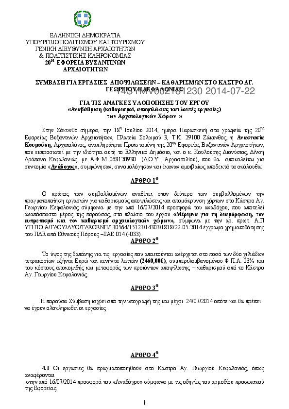 1. ΣΥΜΒΑΣΗ ΓΙΑ ΕΡΓΑΣΙΕΣ ΑΠΟΨΙΛΩΣΕΩΝ – ΚΑΘΑΡΙΣΜΩΝ ΣΤΟ ΚΑΣΤΡΟ ΑΓ. ΓΕΩΡΓΙΟΥ ΚΑΕΦΑΛΟΝΙΑΣ