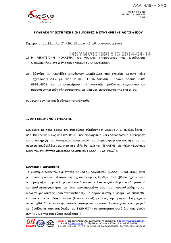 8. ΣΥΜΒΑΣΗ ΥΠΟΣΤΗΡΙΞΗΣ (ΗELPDESK) & ΣΥΝΤΗΡΗΣΗΣ ΛΟΓΙΣΜΙΚΟΥ ΜΕ ORASYS