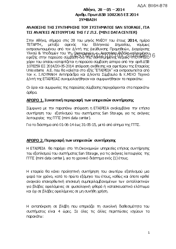 5. ΣΥΜΒΑΣΗ ΑΝΑΘΕΣΗΣ ΤΗΣ ΣΥΝΤΗΡΗΣΗΣ ΤΟΥ ΣΥΣΤΗΜΑΤΟΣ SAN STORAGE, ΓΙΑ ΤΙΣ ΑΝΑΓΚΕΣ ΛΕΙΤΟΥΡΓΙΑΣ ΤΗΣ Γ.Γ.Π.Σ.