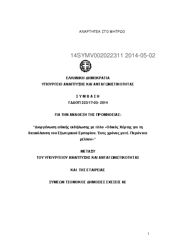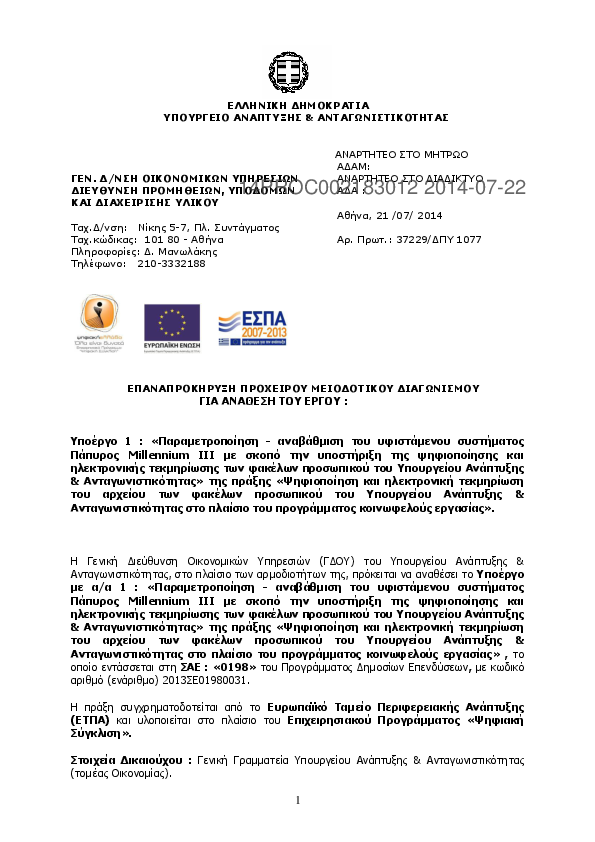 1. ΤΕΥΧΟΣ ΠΡΟΣΚΛΗΣΗΣ ΕΚΔΗΛΩΣΗΣ ΕΝΔΙΑΦΕΡΟΝΤΟΣ ΓΙΑ ΑΝΑΘΕΣΗ ΤΟΥ ΕΡΓΟΥ \"ΠΑΠΥΡΟΣ MILLENNIUM III ΜΕ ΣΚΟΠΟ ΤΗΝ ΥΠΟΣΤΗΡΙΞΗ ΤΗΣ ΨΗΦΙΟΠΟΙΗΣΗΣ ΚΑΙ ΗΛΕΚΤΡΟΝΙΚΗΣ ΤΕΚΜΗΡΙΩΣΗΣ ΤΩΝ ΦΑΚΕΛΩΝ ΠΡΟΣΩΠΙΚΟΥ ΤΟΥ ΥΠΟΥΡΓΕΙΟΥ ΑΝΑΠΤΥΞΗΣ ΚΑΙ ΑΝΤΑΓΩΝΙΣΤΙΚΟΤΗΤΑΣ\" ΤΗΣ Π...