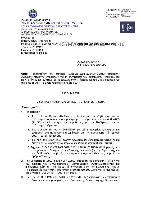 4. 1409_Ψ6Ρ9Φ-ΛΦ6_ ΤΡΟΠΟΠΟΙΗΣΗ ΤΗΣ ΥΠ' ΑΡΙΘΜ. 9355/2615Δ/Φ.Δ02/13.12.2013 ΑΠΟΦΑΣΗ ΑΝΑΘΕΣΗΣ ΠΑΡΟΧΗΣ ΥΠΗΡ