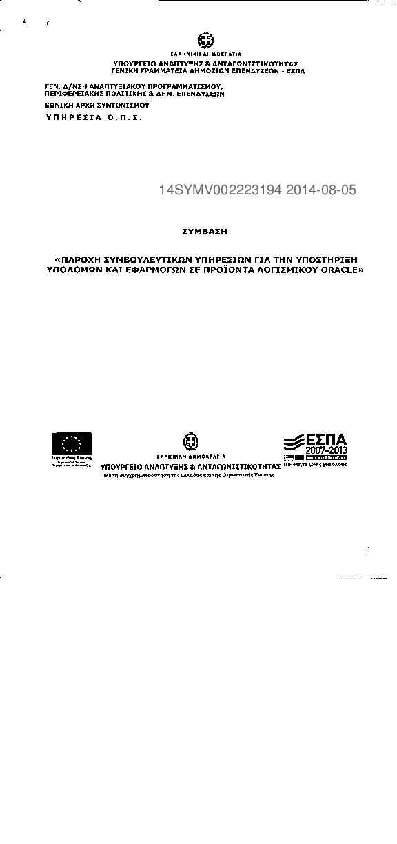 7. ΠΑΡΟΧΗ ΣΥΜΒΟΥΛ. ΥΠΗΡΕΣΙΩΝ ΓΙΑ ΤΗΝ ΥΠΟΣΤΗΡΙΞΗ ΥΠΟΔΟΜΩΝ ΚΑΙ ΕΦΑΡΜΟΓΩΝ ΣΕ ΠΡΟΪΟΝΤΑ ΛΟΓΙΣΜΙΚΟΥ ORACLE