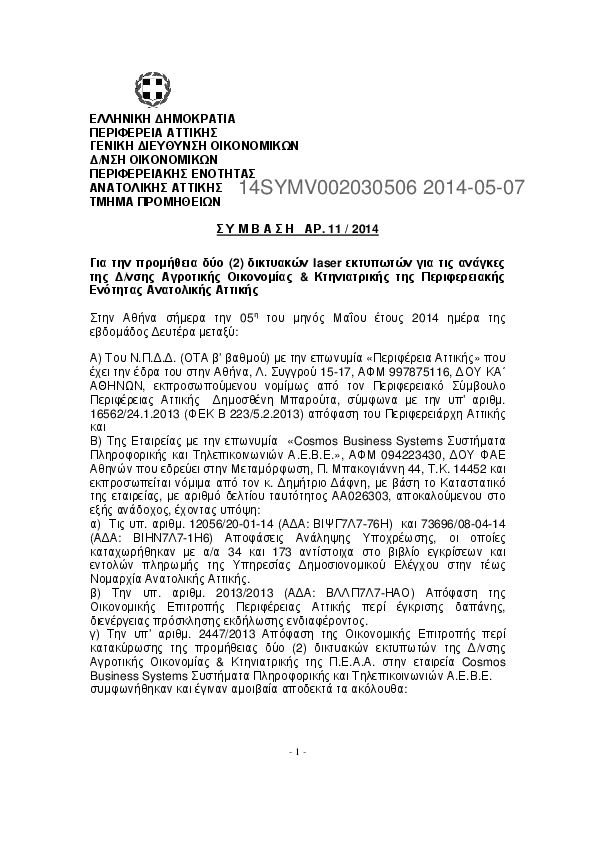 7. Προμήθεια δύο δικτυακών εκτυπωτών για τις ανάγκες της Αγροτικής Οικονομίας και Κτηνιατρικής της ΠΕΑΑ
