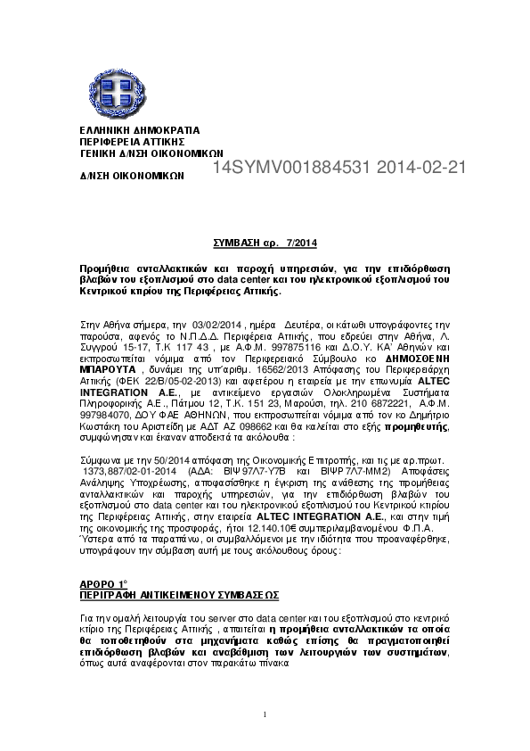 1. Επαναληπτικός Ανοικτός Μειοδοτικός Διαγωνισμός για την παροχή υπηρεσιών και την προμήθεια ειδών για την αναβάθμιση και πιστοποίηση του ΚΤΕΟ Χολαργού της Περιφέρειας Αττικής