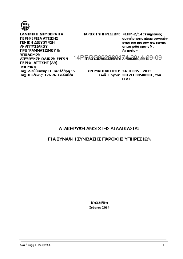 9. «ΣΗΜ-2/14 :Υπηρεσίες συντήρησης ηλεκτρονικών εγκαταστάσεων φωτεινής σηματοδότησης Ν. Αττικής»