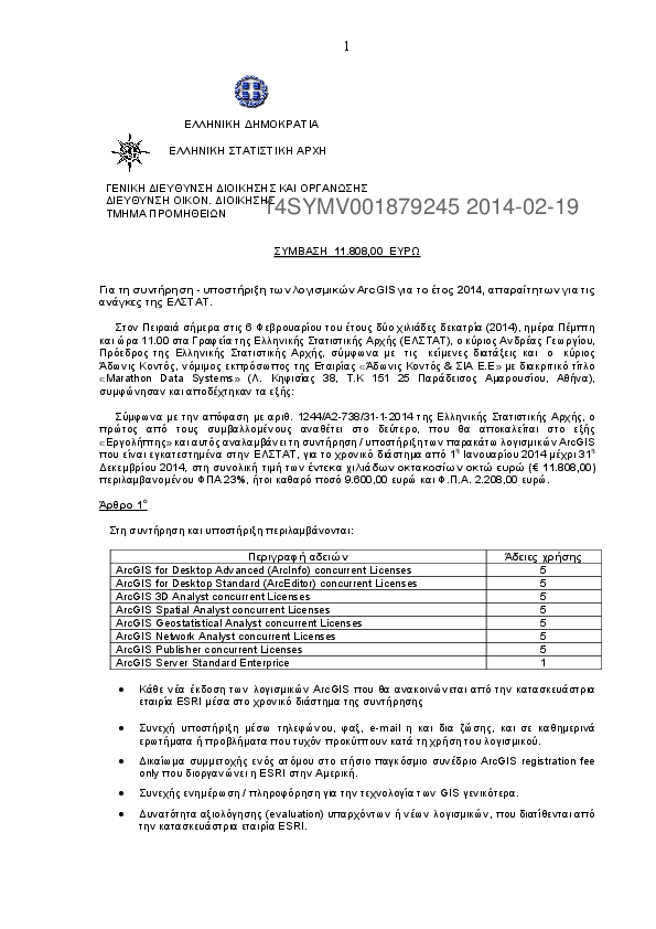 8. Συντήρηση - υποστήριξη των λογισμικών ΑrcGIS για το έτος 2014