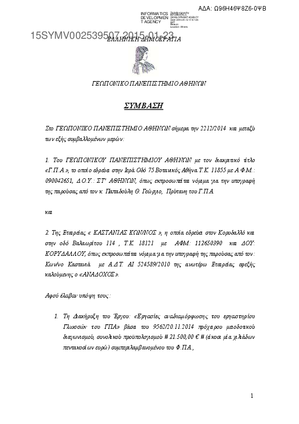 1. ΣΥΜΒΑΣΗ ΕΡΓΟΥ "ΕΡΓΑΣΙΕΣ ΑΝΑΔΙΑΜΟΡΦΩΣΗΣ ΤΟΥ ΕΡΓΑΣΤΗΡΙΟΥ ΓΛΩΣΣΩΝ ΤΟΥ Γ.Π.Α."