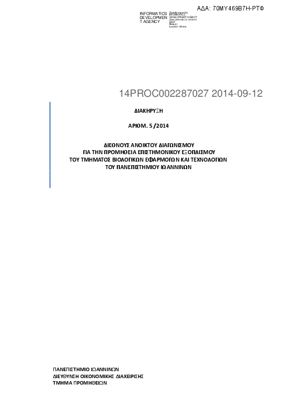 9. «ΠΡΟΜΗΘΕΙΑ ΕΠΙΣΤΗΜΟΝΙΚΟΥ ΕΞΟΠΛΙΣΜΟΥ ΤΟΥ ΤΜΗΜΑΤΟΣ ΒΙΟΛΟΓΙΚΩΝ ΕΦΑΡΜΟΓΩΝ ΚΑΙ ΤΕΧΝΟΛΟΓΙΩΝ ΠΑΝ.ΙΩΑΝΝΙΝΩΝ