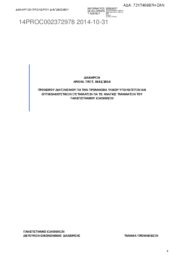5. ΠΡΟΚΗΡΥΞΗ ΑΝΟΙΧΤΟΥ ΔΙΑΓΩΝΙΣΜΟΥ ΓΙΑ ΤΗΝ ΠΡΟΜΗΘΕΙΑ ΠΣ ΛΕΙΤΟΥΡΓΙΚΩΝ ΥΠΗΡΕΣΙΩΝ