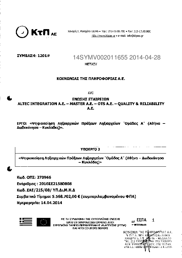 2. Ψηφιοποίηση Ληξιαρχικών Πράξεων Ληξιαρχείων ¨Ομάδας Α¨ (Αθήνα – Δωδεκάνησα – Κυκλάδες)