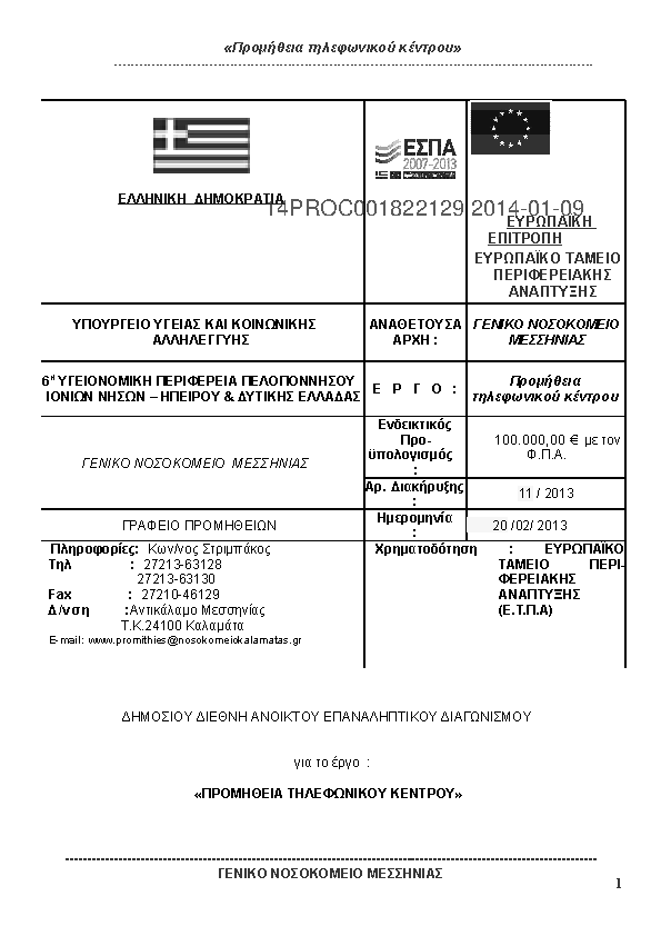 4. 11/2013 ΠΡΠΜΗΘΕΙΑ ΤΗΛΕΦΩΝΙΚΟΥ ΚΕΝΤΡΟΥ