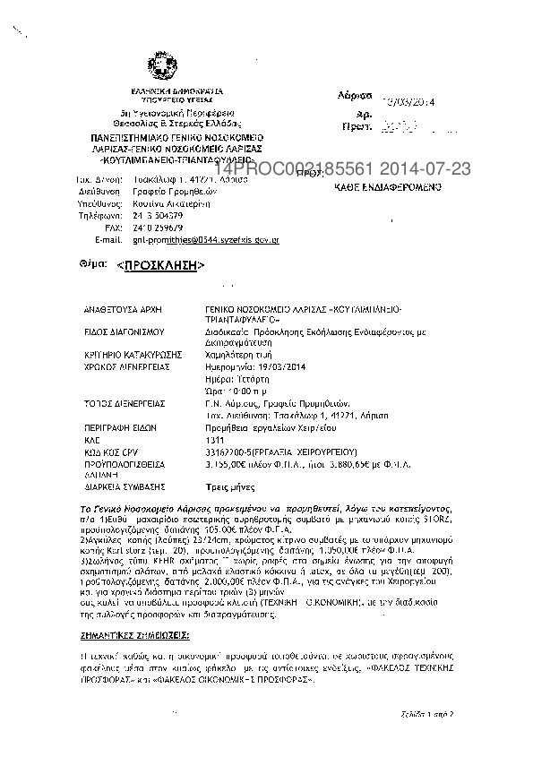 1. ΠΡΟΣΚΛΗΣΗ ΠΡΟΜΗΘΕΙΑΣ ΕΡΓΑΛΕΙΩΝ ΧΕΙΡΟΥΡΓΕΙΟΥ