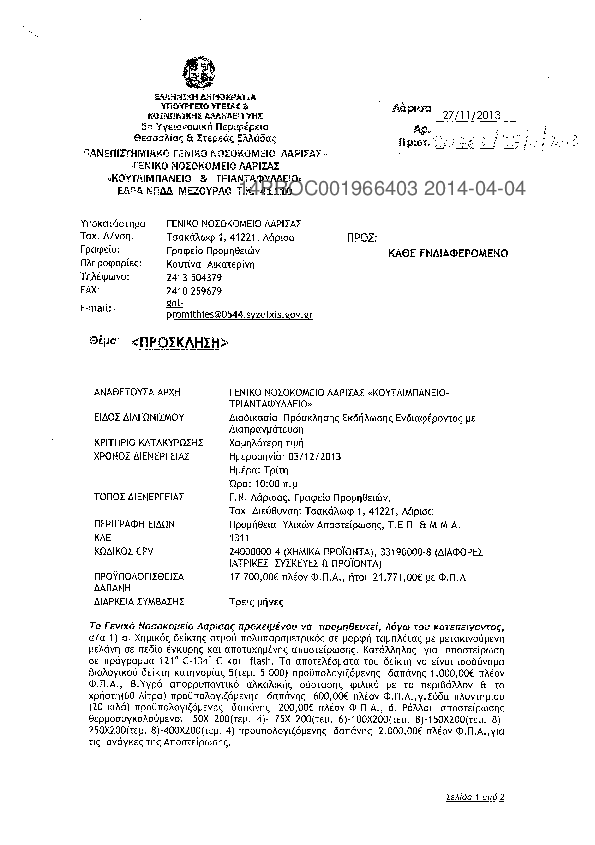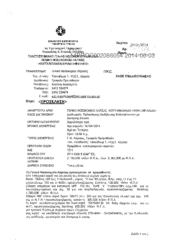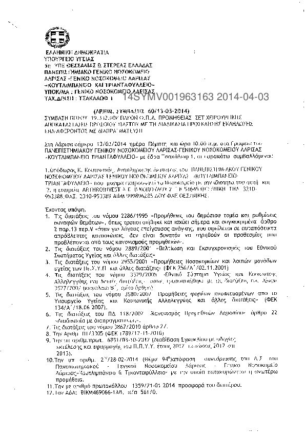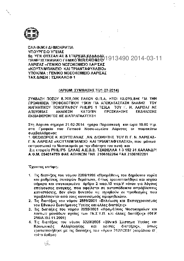 5. ΣΥΜΒΑΣΗ ΓΙΑ ΤΗΝ ΠΡΟΜΗΘΕΙΑ ΤΡΟΦΟΔΟΤΙΚΟΥ ΓΑΙ ΑΠΟΚΑΤΑΣΤΑΣΗ ΒΛΑΒΗΣ ΜΑΓΝΗΤΙΚΟΥ ΤΟΜΟΓΡΑΦΟΥ ΤΟΥ ΓΝΛΑΡΙΣΑΣ