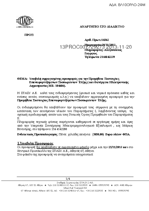 4. ΑΙΤΗΣΗ ΥΠΟΒΟΛΗΣ ΣΦΡΑΓΙΣΜΕΝΗΣ ΠΡΟΣΦΟΡΑΣ για την Διακρίβωση Μετρητικού Εξοπλισμού και διενέργεια Ηλεκτρονικού Πλειστηριασμού (Β’ ΠΕΡΙΟΔΟΥ 2013)