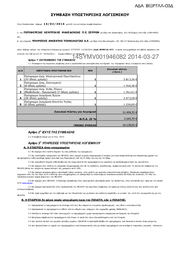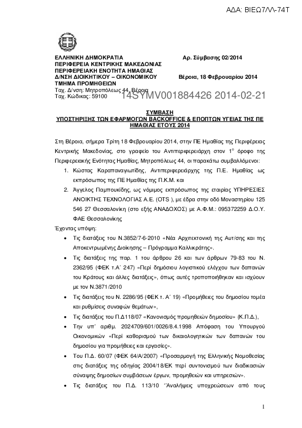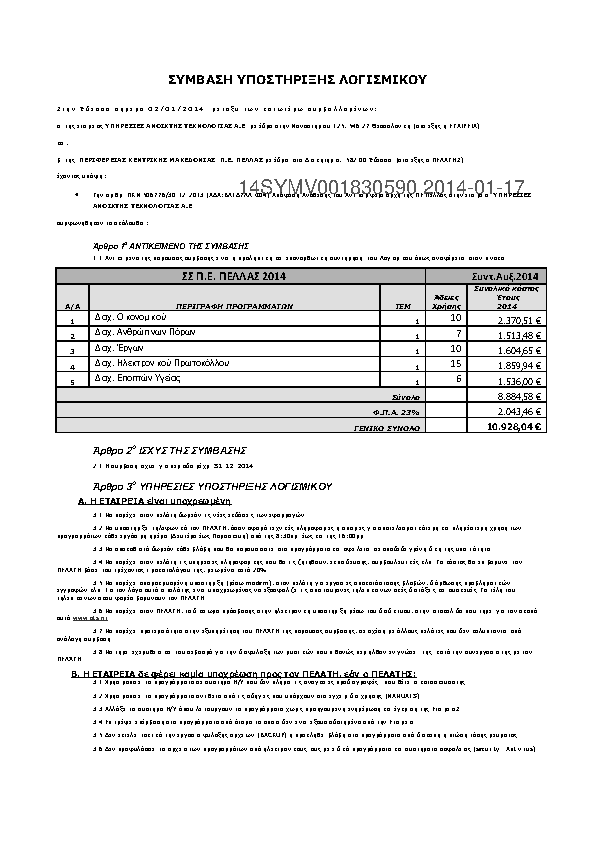 2. ΣΥΜΒΑΣΗ ΥΠΟΣΤΗΡΙΞΗΣ ΤΩΝ ΕΦΑΡΜΟΓΩΝ BACKOFFICE & ΕΠΟΠΤΩΝ ΥΓΕΙΑΣ ΤΗΣ ΠΕ ΗΜΑΘΙΑΣ ΕΤΟΥΣ 2014