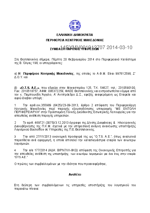 3. ΣΥΜΒΑΣΗ ΜΕΤΑΞΥ Π.Κ.Μ. & ΟΤS Α.Ε.ΓΙΑ ΛΕΙΤΟΥΡΓΙΚΗ ΥΠΟΣΤΗΡΙΞΗ ΛΟΓΙΣΜΙΚΩΝ BACKOFFICE Π.K.M. ΓΙΑ ΤΟ 2014