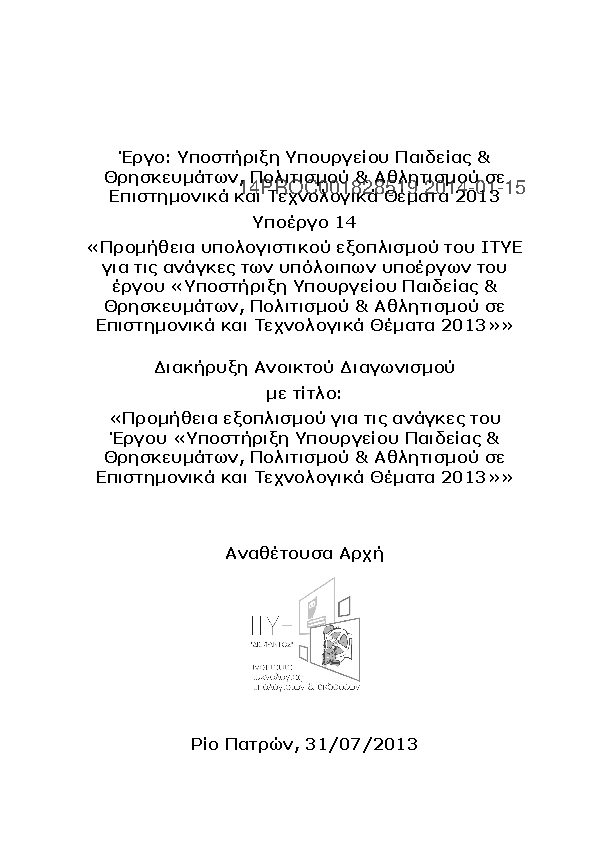 5. Προμήθεια Εξοπλισμού για την Υποστήριξη του Υ.ΠΑΙ.Θ. σε Επιστημονικά και Τεχνολογικά Θέματα 2013