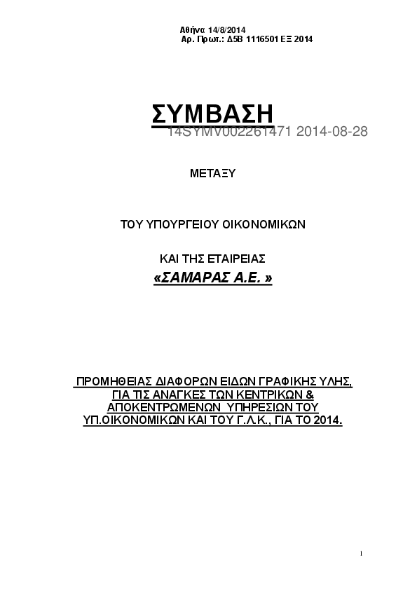1. ΣΥΜΒΑΣΗ ΜΕΤΑΞΥ ΤΟΥ ΥΠ. ΟΙΚΟΝ. ΚΑΙ ΤΗΣ ΕΤΑΙΡΕΙΑΣ ΣΑΜΑΡΑΣ Α.Ε.