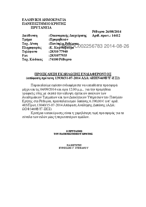 4. ΟΜΑΔΙΚΗ ΠΡΟΜΗΘΕΙΑ ΓΡΑΦΙΚΗΣ ΥΛΗΣ 2014 ΠΑΝ/ΜΙΟΥ ΚΡΗΤΗΣ ΡΕΘ