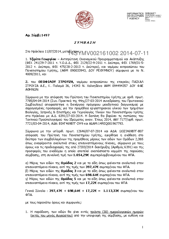 Αναζήτηση σε προκηρύξεις και συμβάσεις για: