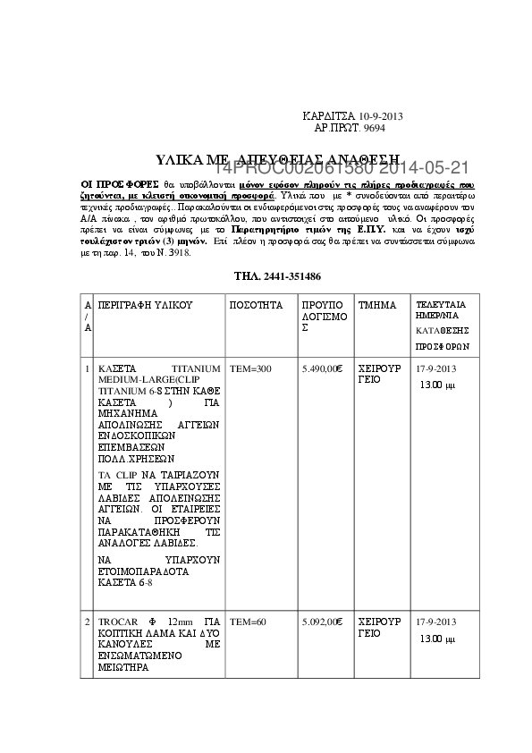 Αναζήτηση στο ΚΗΜΔΗΣ