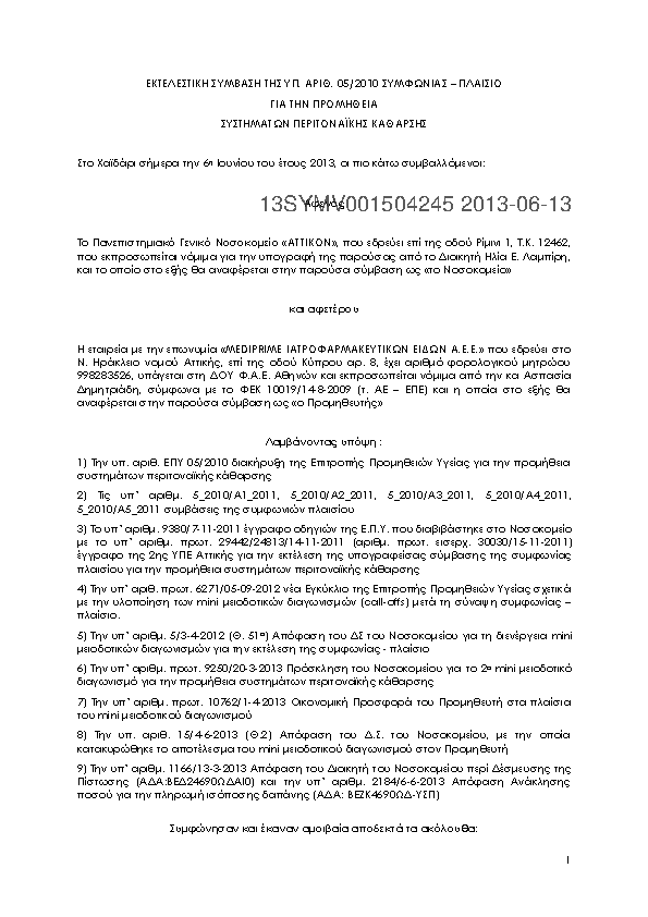 4. ΕΚΤΕΛΕΣΤΙΚΗ ΣΥΜΒΑΣΗ ΤΗΣ 05/2010 ΣΥΜΦΩΝΙΑΣ – ΠΛΑΙΣΙΟ ΓΙΑ ΤΗΝ ΠΡΟΜΗΘΕΙΑ ΣΥΣΤ. ΠΕΡΙΤΟΝ. ΚΑΘΑΡΣΗΣ