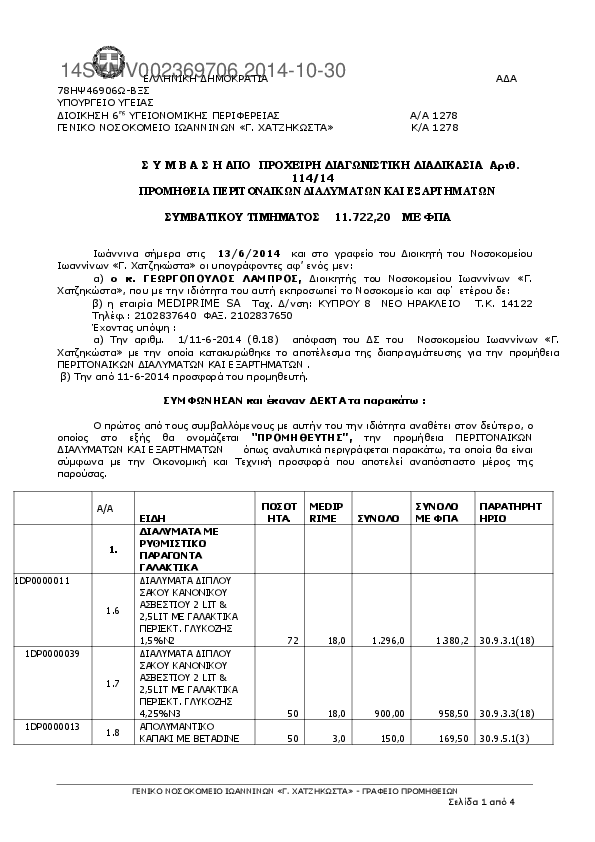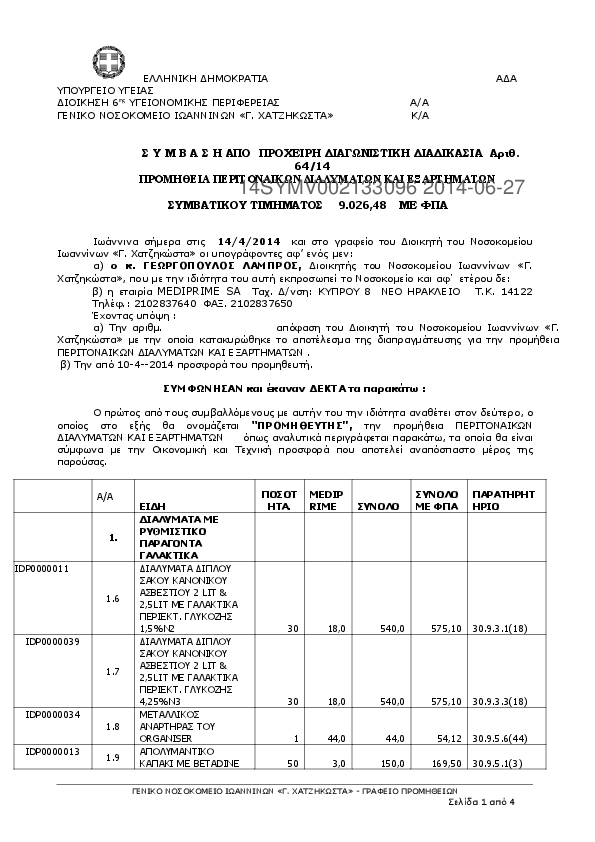 4. ΠΡΟΜΗΘΕΙΑ ΠΕΡΙΤΟΝΑΪΚΩΝ ΔΙΑΛΥΜΑΤΩΝ ΚΑΙ ΕΞΑΡΤΗΜΑΤΩΝ